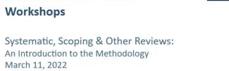 Trainee Workshop - Systematic, Scoping, & Other Reviews: An Introduction to the Methodology