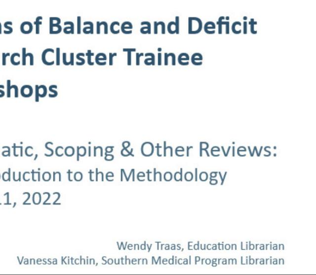 March 11, 2022Trainee Workshop - Systematic, Scoping, & Other Reviews: An Introduction to the Methodology