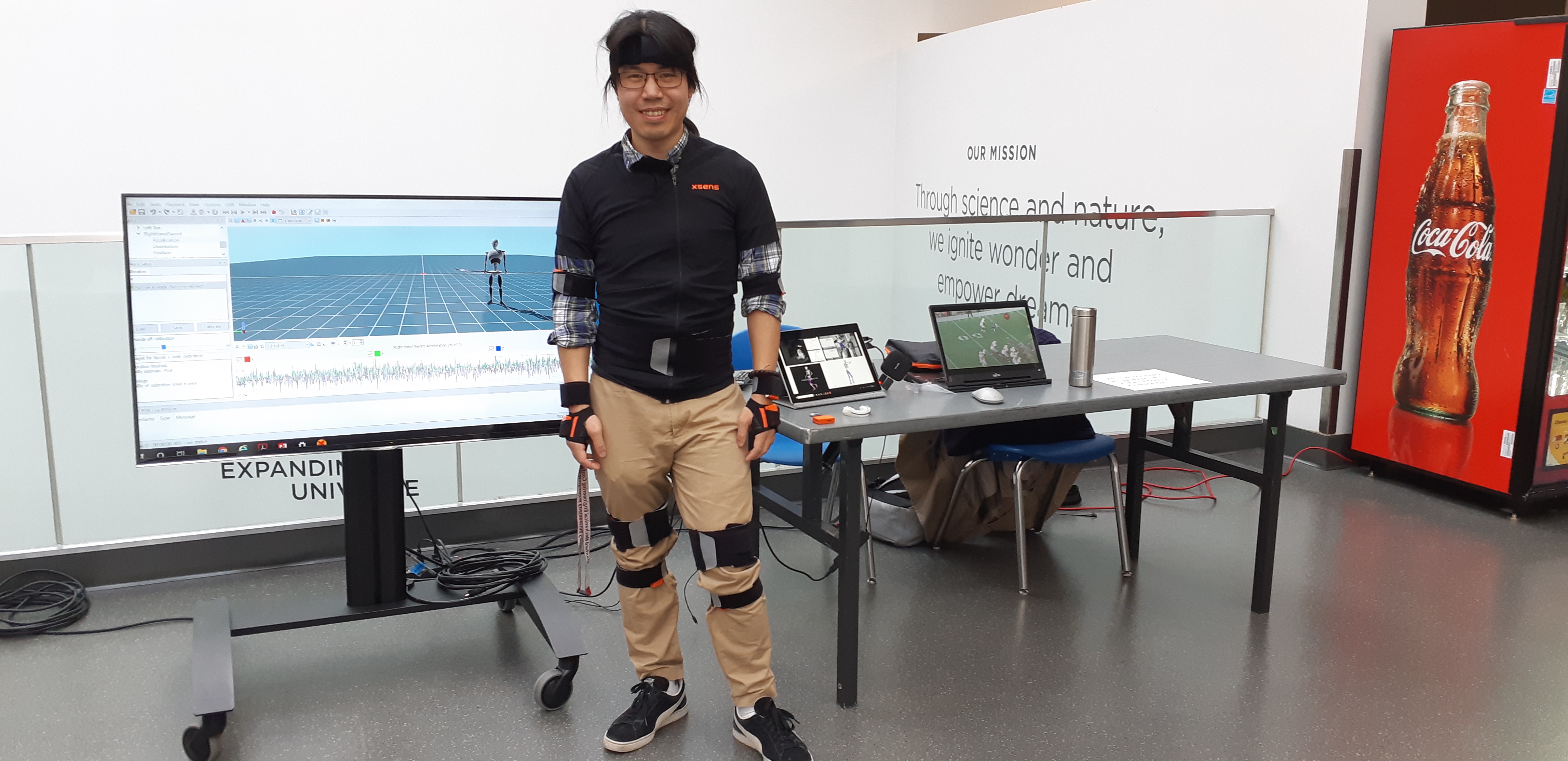 Cluster trainee Calvin Kuo (pictured above wearing motion sensors) hosted an exhibition at Science World on Tuesday , November 20th, for their "Teen Tuesday" events on the theme of "Human Modeling and Visualization". UBC researchers and clinicians are using new wearable technologies to measure human motion of everyday life. These new wearable sensors are based on the same inertial measurement unit sensors that are embedded in most electronics, from phones to VR headsets. These sensors are being used to monitor gait patterns (referencing Michael Hunt), measure head impacts (Lyndia Wu), and to better visualize and understand how humans move in natural environments (Calvin, Jean-Sébastien and Dinesh Pai).